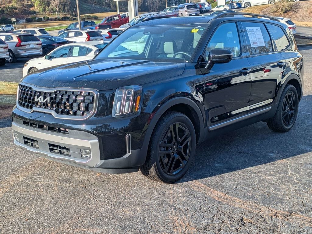 2022 Kia Telluride EX 20" x 7.5" Machined Alloy Wheels, 2nd Row Captain Chairs, 3.648 Axle Ratio, 3rd row seats: split-bench, 4-Wheel Disc Brakes, 6 Speakers, ABS brakes, Air Conditioning, Alloy wheels, AM/FM radio: SiriusXM, Apple CarPlay & Android Auto, Auto-dimming Rear-View mirror, Automatic temperature control, Brake assist, Bumpers: body-color, Carpeted Floor Mats, Compass, Delay-off headlights, Driver door bin, Driver vanity mirror, Dual front impact airbags, Dual front side impact airbags, Electronic Stability Control, Emergency communication system: 911 Connect, EX Premium Package, Folding Cargo Tray, Four wheel independent suspension, Front anti-roll bar, Front Bucket Seats, Front Center Armrest, Front dual zone A/C, Front reading lights, Fully automatic headlights, Heated & Ventilated Front Bucket Seats, Heated door mirrors, Heated front seats, Hybrid Cargo Net, Illuminated entry, Knee airbag, Leather Seat Trim, Leather Shift Knob, Leather steering wheel, LED Headlamps, Low tire pressure warning, Navigation System, Occupant sensing airbag, Outside temperature display, Overhead airbag, Overhead console, Panic alarm, Passenger door bin, Passenger vanity mirror, Power door mirrors, Power driver seat, Power Liftgate, Power moonroof, Power passenger seat, Power steering, Power windows, Radio data system, Radio: AM/FM Display Audio System, Rear air conditioning, Rear anti-roll bar, Rear audio controls, Rear reading lights, Rear seat center armrest, Rear window defroster, Rear window wiper, Reclining 3rd row seat, Remote keyless entry, Roof rack: rails only, Satin Chrome Roof Rails, Security system, Smart Key w/ Push Button and Remote Start, Speed control, Speed-sensing steering, Split folding rear seat, Spoiler, Steering wheel mounted audio controls, Tachometer, Telescoping steering wheel, Tilt steering wheel, Traction control, Trip computer, Turn signal indicator mirrors, Variably intermittent wipers, Ventilated front seats, Wheels: 18" x 7.5" Machined Alloy.