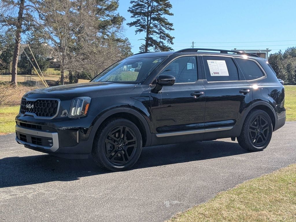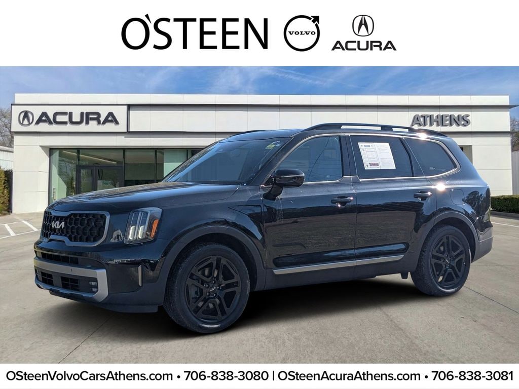 2023 Kia Telluride SX X-Line 10 Speakers, 3.648 Axle Ratio, 3rd row seats: split-bench, 4-Wheel Disc Brakes, ABS brakes, Air Conditioning, Alloy wheels, AM/FM radio: SiriusXM, Apple CarPlay & Android Auto, Auto High-beam Headlights, Auto-dimming Rear-View mirror, Auto-leveling suspension, Automatic temperature control, Brake assist, Bumpers: body-color, Compass, Delay-off headlights, Driver door bin, Driver vanity mirror, Dual front impact airbags, Dual front side impact airbags, Electronic Stability Control, Emergency communication system: 911 Connect, Exterior Parking Camera Rear, Four wheel independent suspension, Front anti-roll bar, Front Bucket Seats, Front Center Armrest, Front dual zone A/C, Front fog lights, Front reading lights, Fully automatic headlights, Garage door transmitter: HomeLink, harman/kardon® Speakers, Heated & Ventilated Front Bucket Seats, Heated door mirrors, Heated front seats, Heated steering wheel, Illuminated entry, Knee airbag, Leather Seat Trim, Leather Shift Knob, Leather steering wheel, Low tire pressure warning, Memory seat, Navigation System, Occupant sensing airbag, Outside temperature display, Overhead airbag, Overhead console, Panic alarm, Passenger door bin, Passenger vanity mirror, Power door mirrors, Power driver seat, Power Liftgate, Power moonroof, Power passenger seat, Power steering, Power windows, Radio data system, Radio: AM/FM harman/kardon Audio System, Rear air conditioning, Rear anti-roll bar, Rear audio controls, Rear reading lights, Rear side impact airbag, Rear window defroster, Rear window wiper, Reclining 3rd row seat, Remote keyless entry, Roof rack: rails only, Sage Green Interior Color Package, Security system, Smart Key w/ Push Button and Remote Start, Speed control, Speed-sensing steering, Split folding rear seat, Spoiler, Steering wheel mounted audio controls, Tachometer, Telescoping steering wheel, Tilt steering wheel, Traction control, Trip computer, Turn signal indicator mirrors, Variably intermittent wipers, Ventilated front seats, Wheels: 20" x 7.5" Black Finish X-LINE Exclusive.