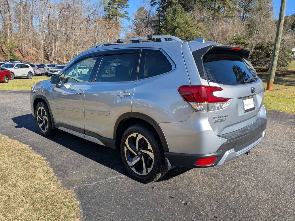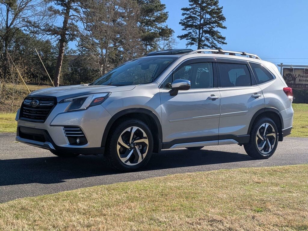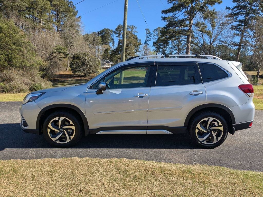 2022 Subaru Forester Touring 3.70 Axle Ratio, 4-Wheel Disc Brakes, 9 Speakers, ABS brakes, Aero Crossbar Set, Air Conditioning, All-Weather Floor Liners, Alloy Wheel Locks, Alloy wheels, AM/FM radio: SiriusXM, Anti-whiplash front head restraints, Auto High-beam Headlights, Auto-Dimming Exterior Mirror w/Approach Lighting, Auto-Dimming Mirror w/Compass & HomeLink, Automatic temperature control, Brake assist, Bumpers: body-color, CD player, Driver door bin, Driver vanity mirror, Dual front impact airbags, Dual front side impact airbags, Electronic Stability Control, Emergency communication system: STARLINK Safety and Security (Subscription Required), Exterior Parking Camera Rear, Four wheel independent suspension, Front anti-roll bar, Front Bucket Seats, Front Center Armrest, Front dual zone A/C, Front fog lights, Front reading lights, Fully automatic headlights, harman/kardon 576W Amp & Speaker System, harman/kardon® Speakers, Heated door mirrors, Heated Front Bucket Seats, Heated front seats, Heated rear seats, Heated steering wheel, HVAC memory, Ice Silver Metallic Body Side Molding, Ice Silver Metallic Door Edge Guards, Illuminated entry, Knee airbag, Leather Shift Knob, Low tire pressure warning, Memory seat, Navigation System, Occupant sensing airbag, Outside temperature display, Overhead airbag, Overhead console, Panic alarm, Passenger door bin, Passenger vanity mirror, Perforated Leather-Trimmed Upholstery, Power door mirrors, Power driver seat, Power Liftgate, Power moonroof: Panoramic, Power passenger seat, Power steering, Power windows, Premium audio system: harman/kardon, Radio data system, Radio: Subaru Starlink 8.0" Multimedia Nav System, Rear anti-roll bar, Rear Bumper Cover, Rear seat center armrest, Rear window defroster, Rear window wiper, Remote keyless entry, Roof rack: rails only, Security system, Speed control, Speed-sensing steering, Splash Guards, Split folding rear seat, Spoiler, Standard Model, STARLINK/Apple CarPlay/Android Auto, Steering wheel mounted audio controls, Tachometer, Telescoping steering wheel, Tilt steering wheel, Traction control, Trip computer, Turn signal indicator mirrors, Variably intermittent wipers, Wheels: 18" x 7.0J Dark Gray Machine Finish Alloy.